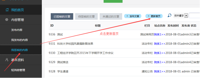 如果發布的內容審核后,還是沒有看到效果,一般是沒有更新緩存或靜態首頁;
